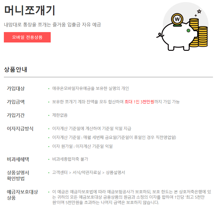 모바일 전용 상품으로 모바일 앱을 통해서만 개설 가능하고