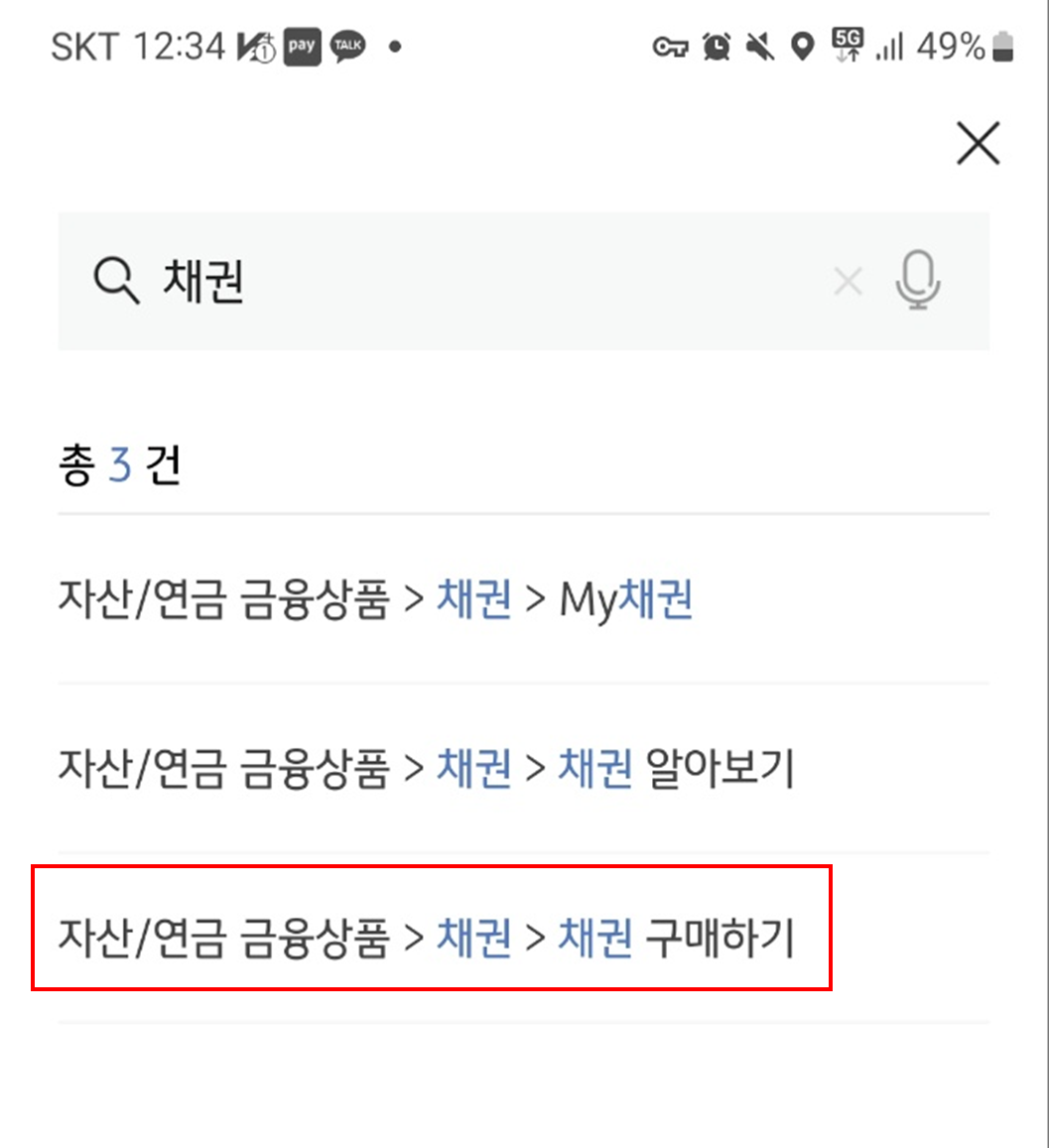 3. 메뉴에서 채권을 검색하여 채권 구매하기 선택해 주세요.